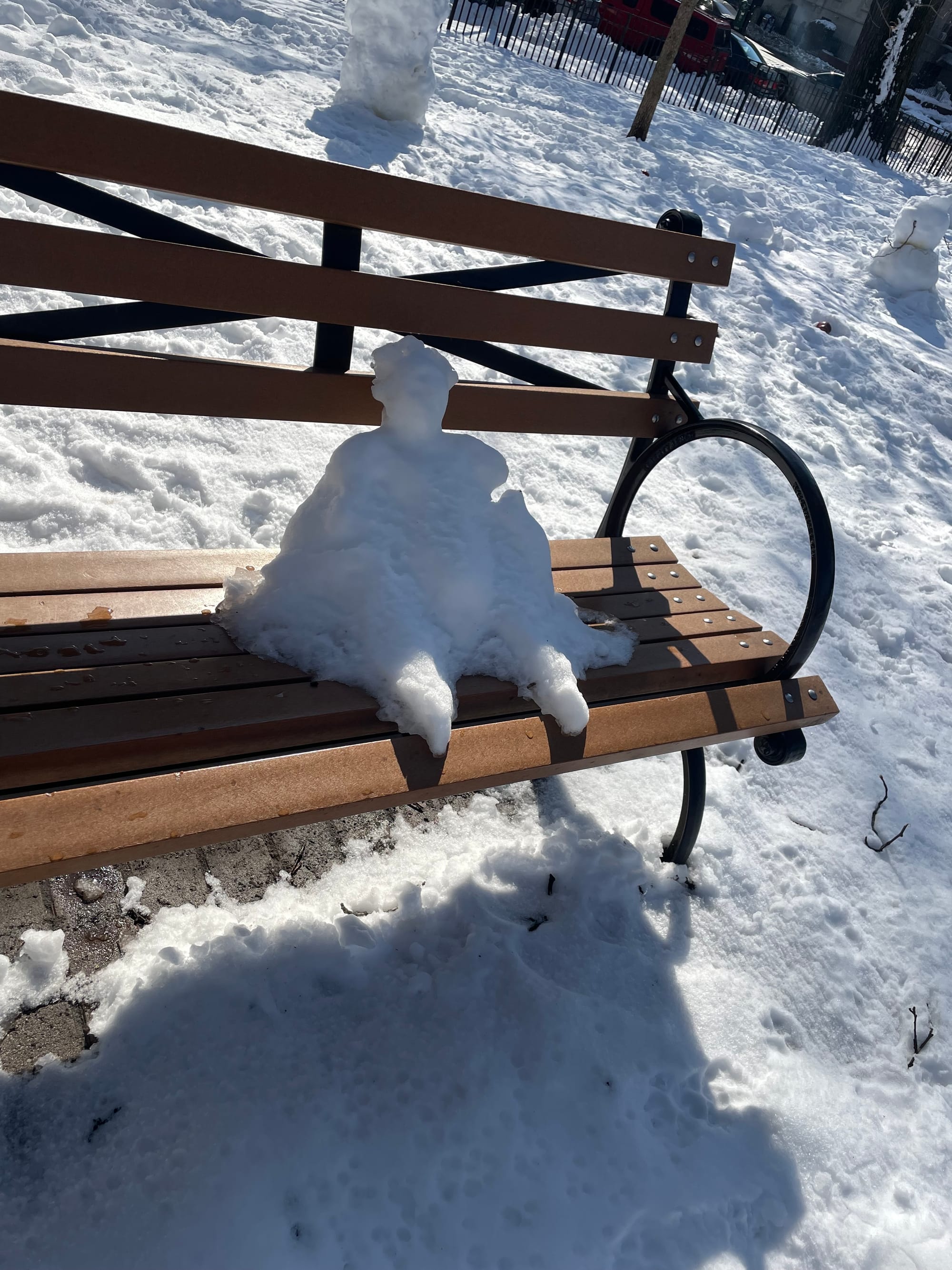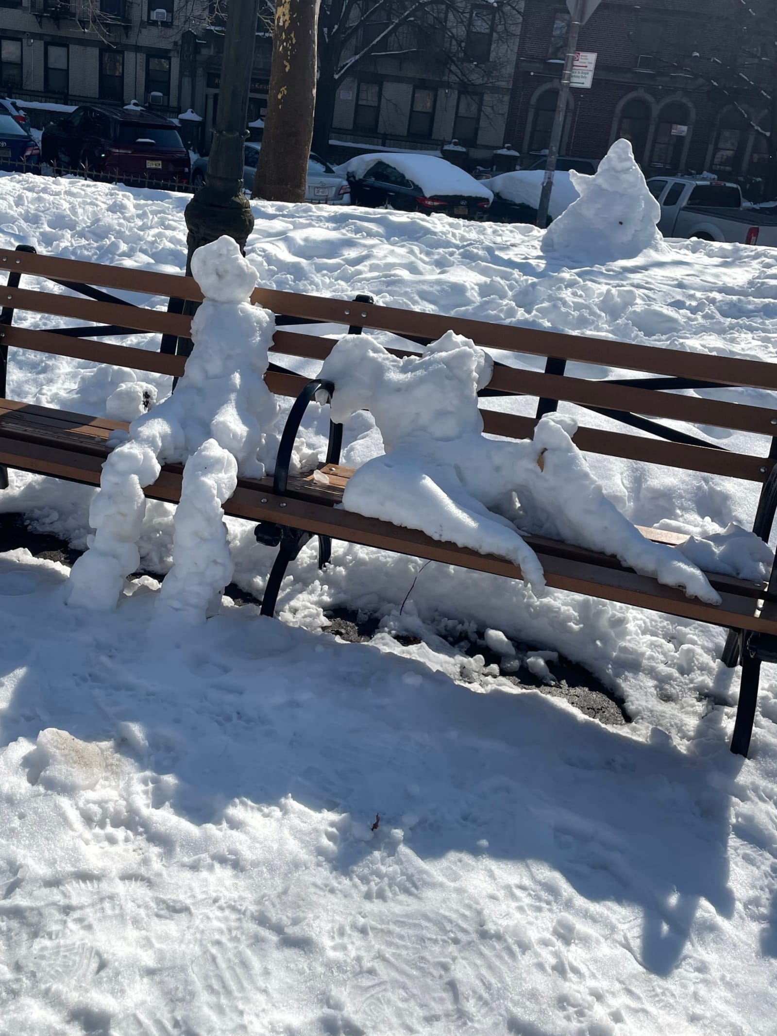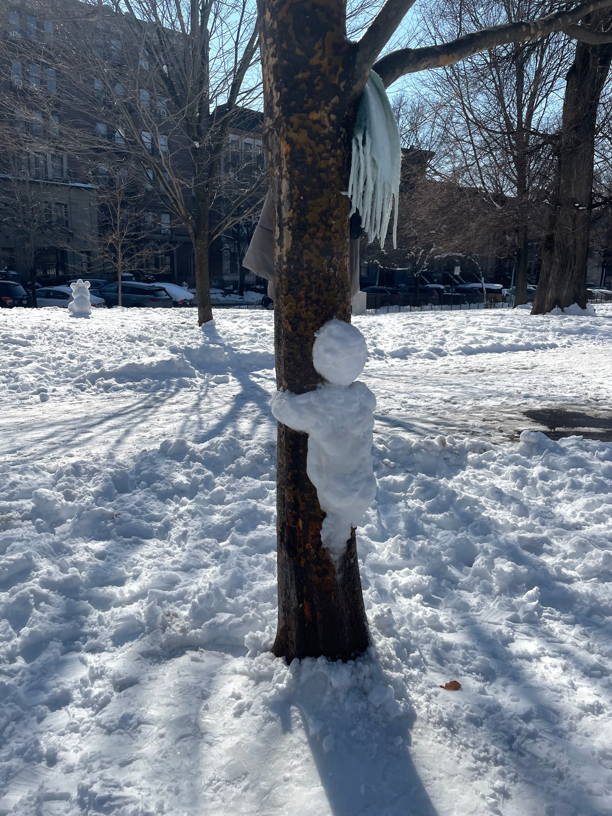 A dispatch from the thawing hearts and frozen hands of Brower Park, Brooklyn. I made none of these and salute their artists and their collaborator, the sun.