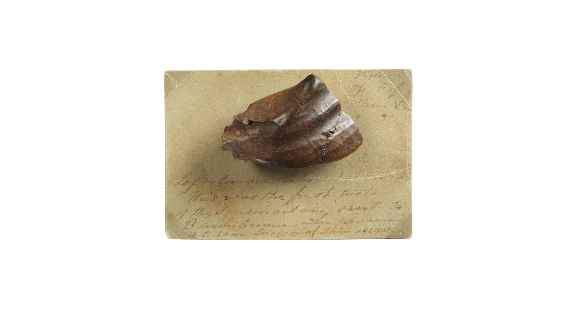 "This small and rather unprepossessing object is one of Te Papa's most valuable treasures—a fossil iguanodontid tooth with a worn crown. It is one of the first fossils ever to be recognised as dinosaur and its discovery marked the beginning of dinosaur studies."